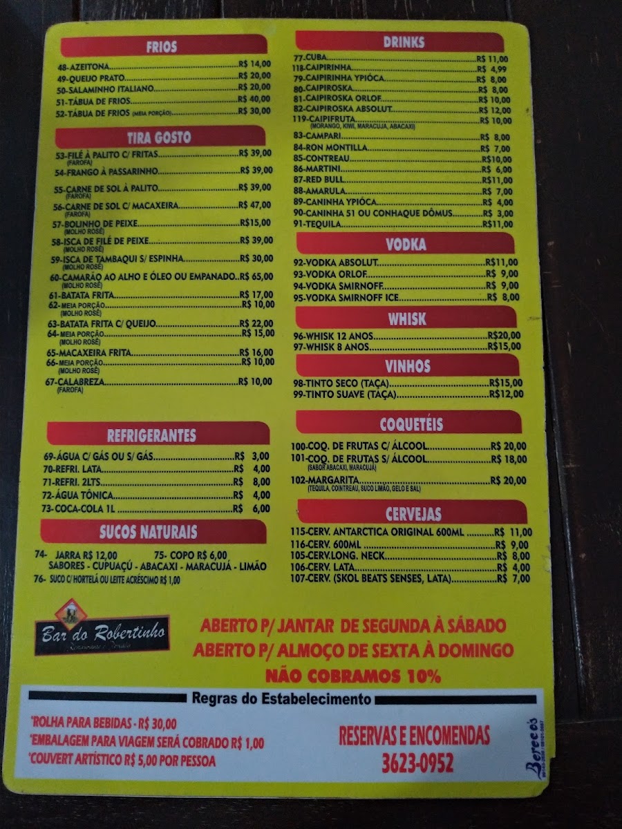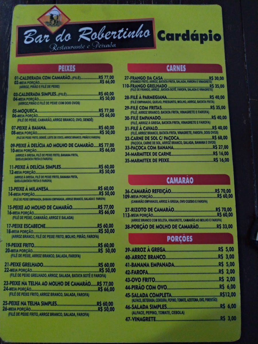 Introducing the Menu at Bar do Robertinho Restaurante e Peixada